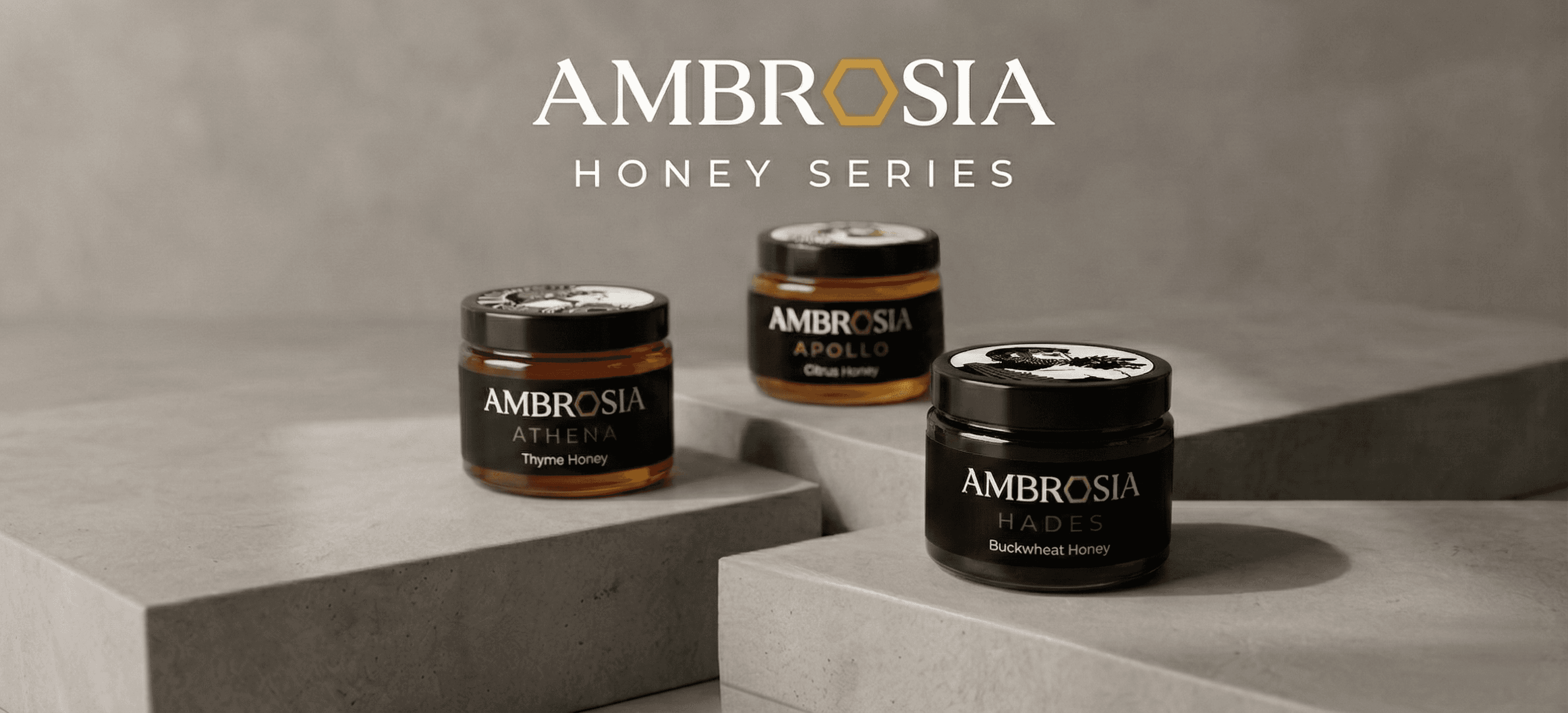 A conceptual honey brand inspired by Greek mythology, where honey was considered the food of the gods.