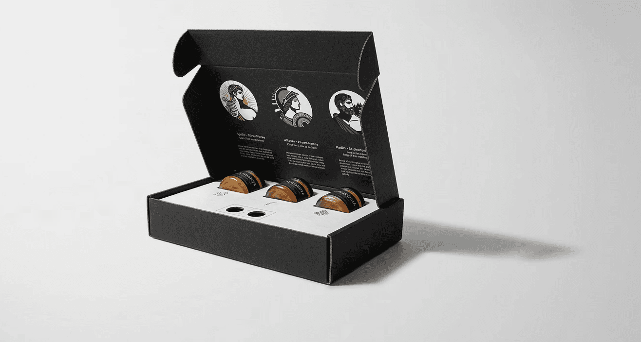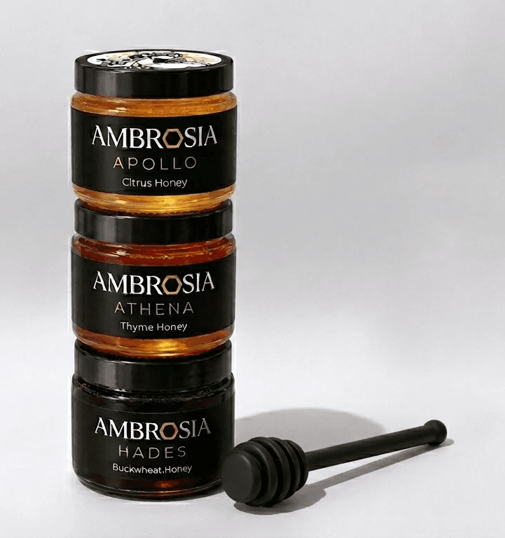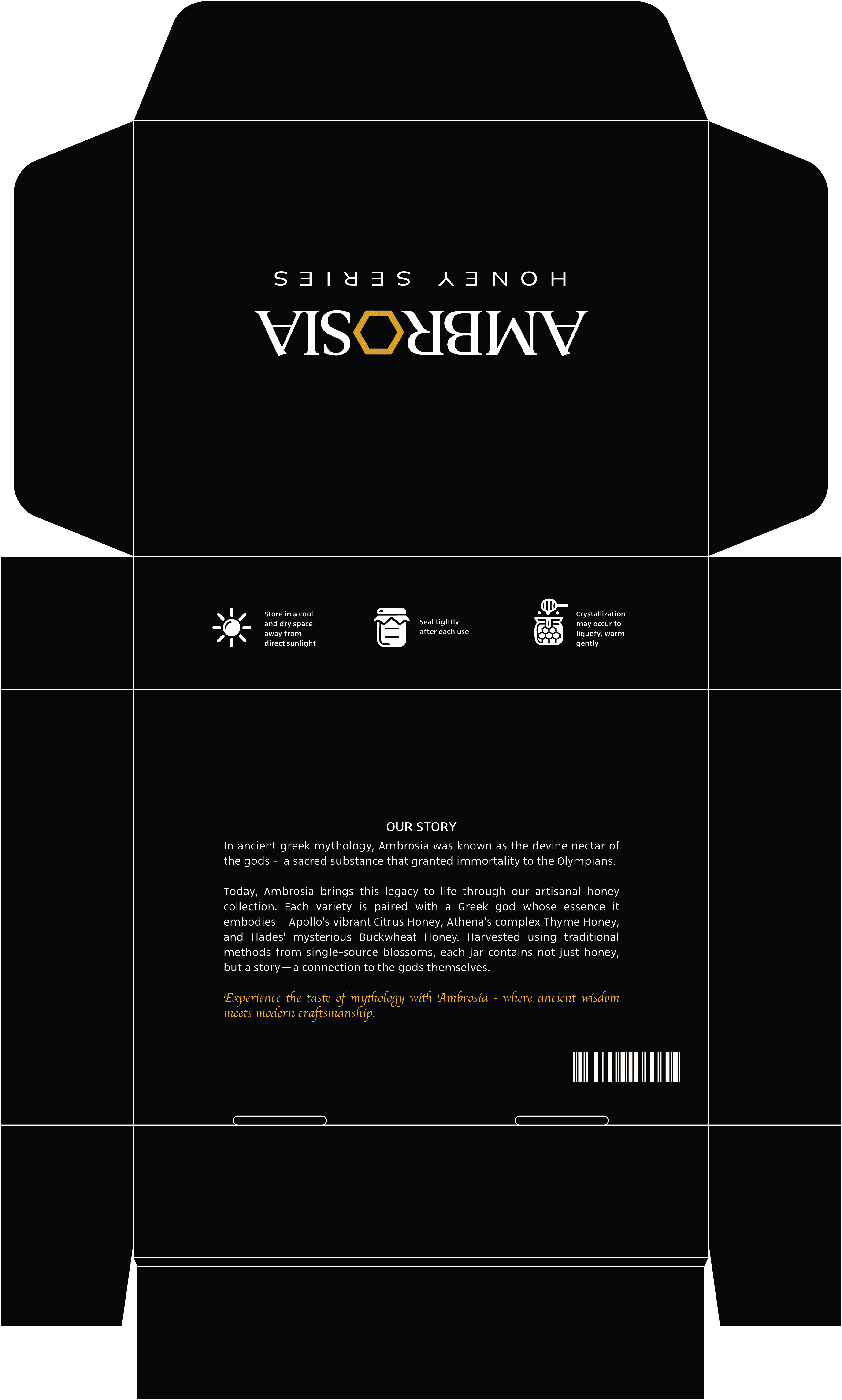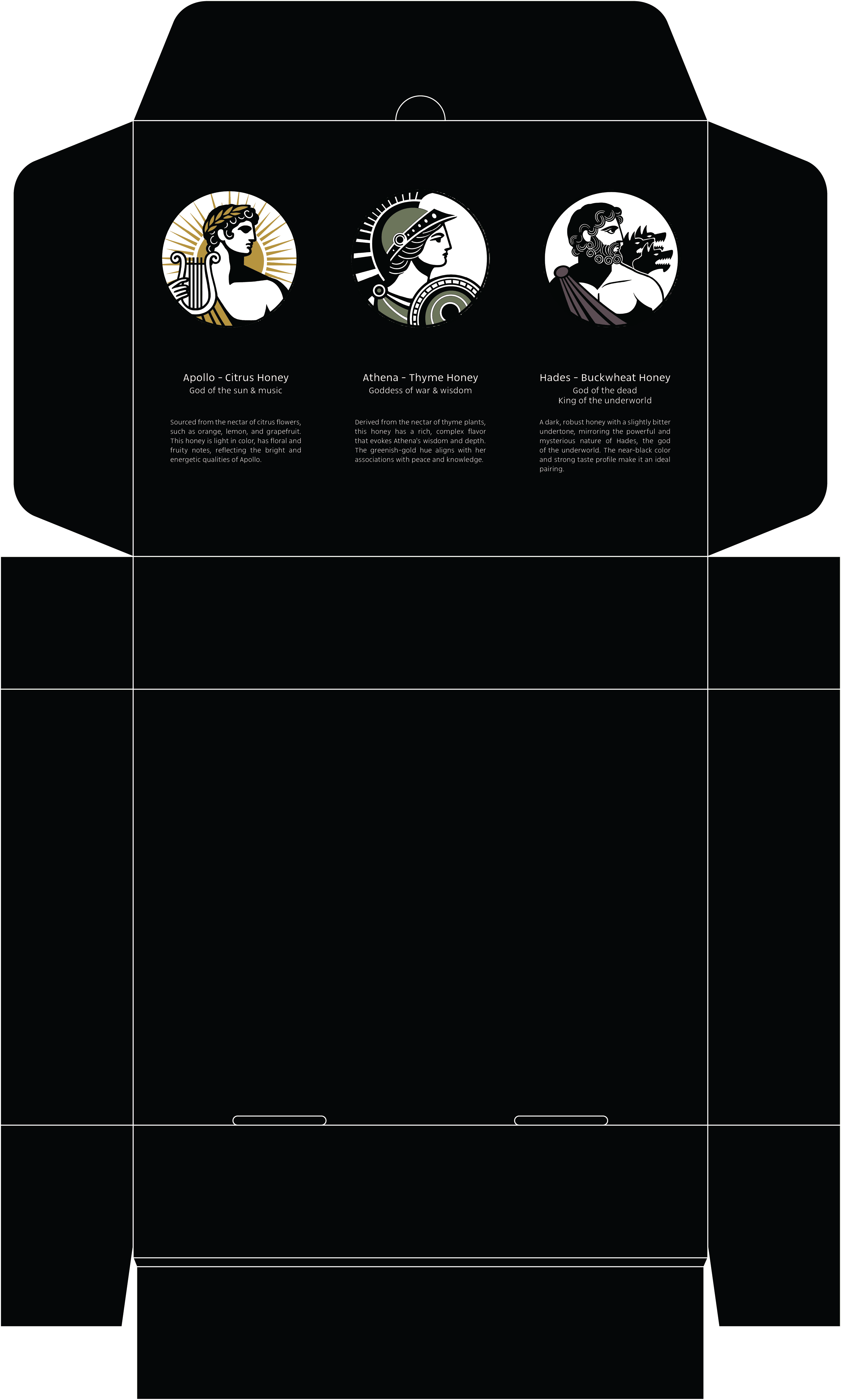 A honey brand concept inspired ny the unique qualities of different honey varieties, each linked to a Greek deity whose personality reflects its color, flavor and character.