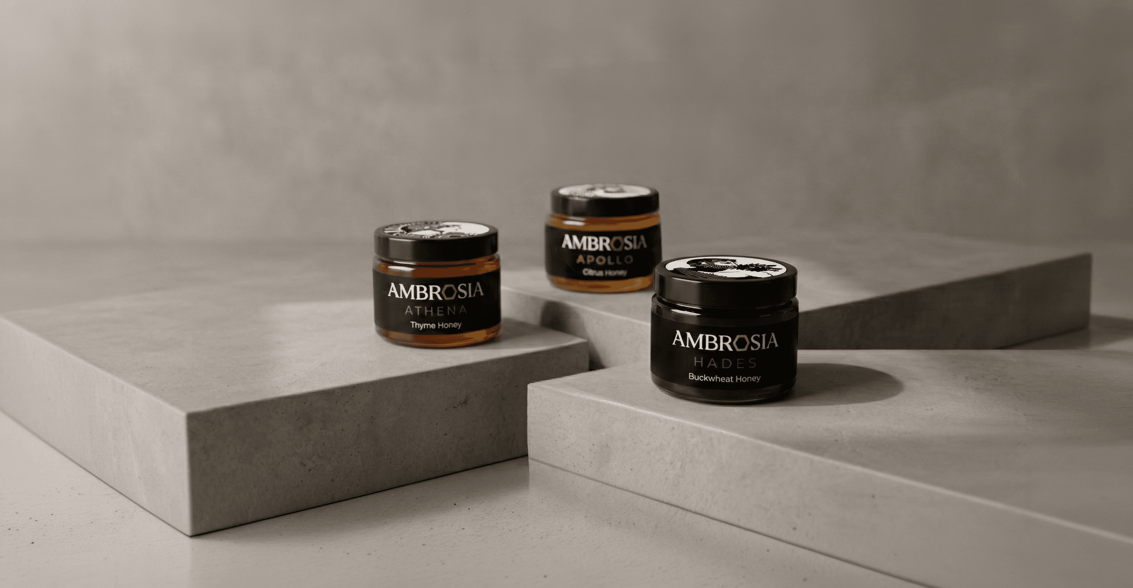 For this project, I chose honey. During my research, I discovered that different honey varieties carry distinct colors, flavors and characteristics depending on their floral source. I also came across its connection to Greek mythology, where honey was associated with ambrosia- the food of the gods.