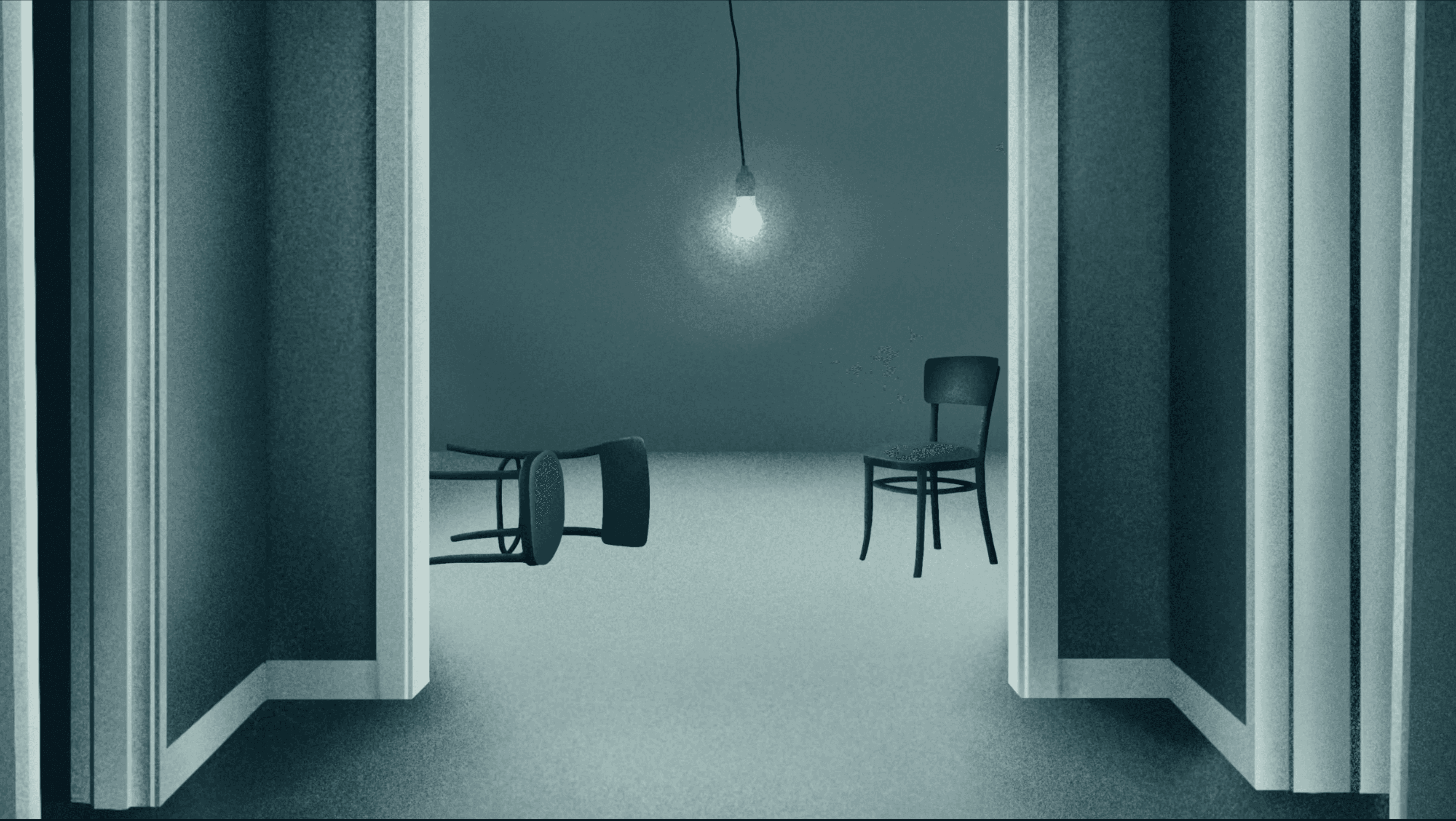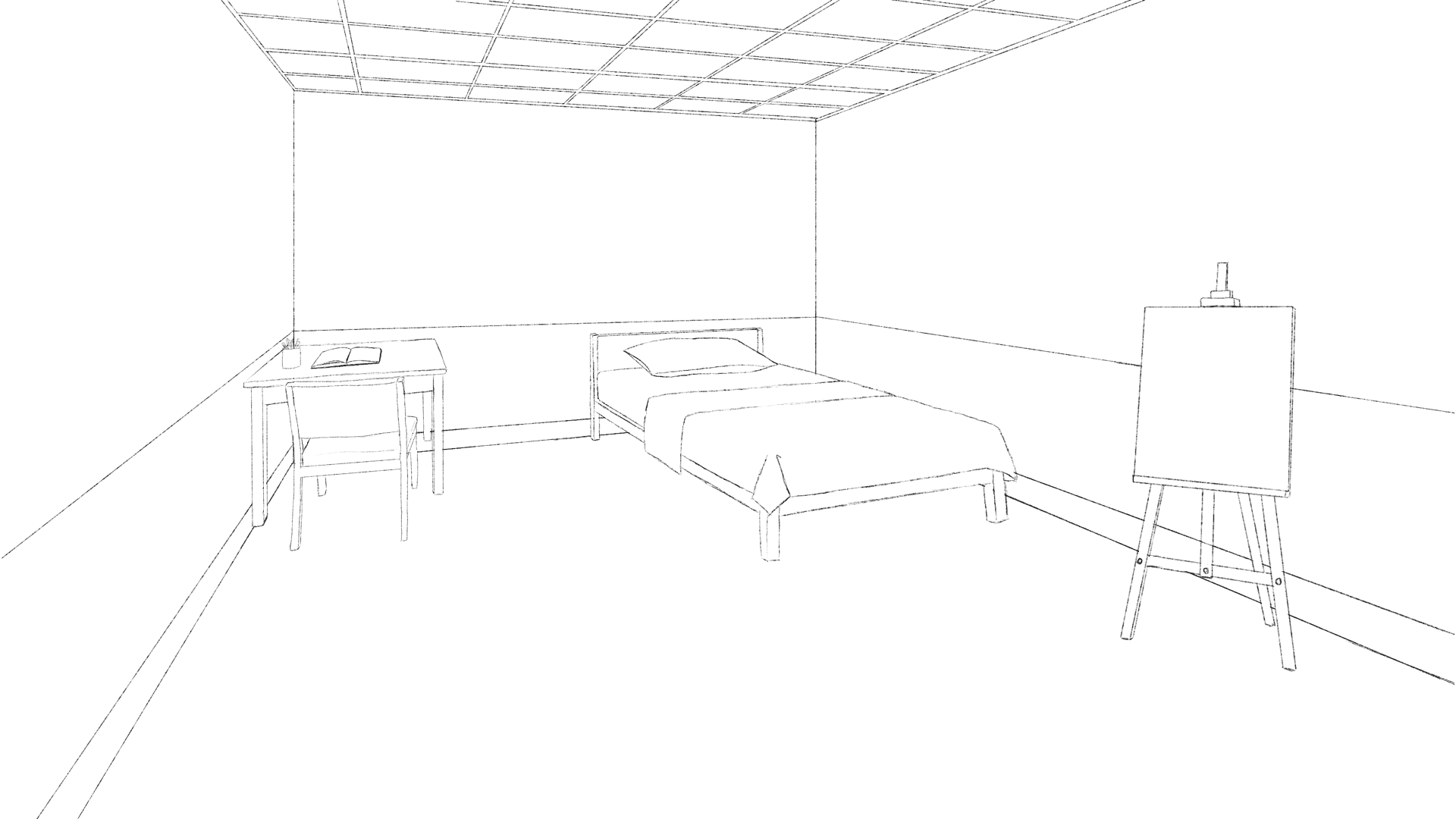 After researching about the book, i gathered a set of key spaces in which the story took place in, along with objects that hold strong narrative significance throughout it. In terms of visual language, I aimed to create a tense atmosphere through a limited color palette and a cold, detaches tone.